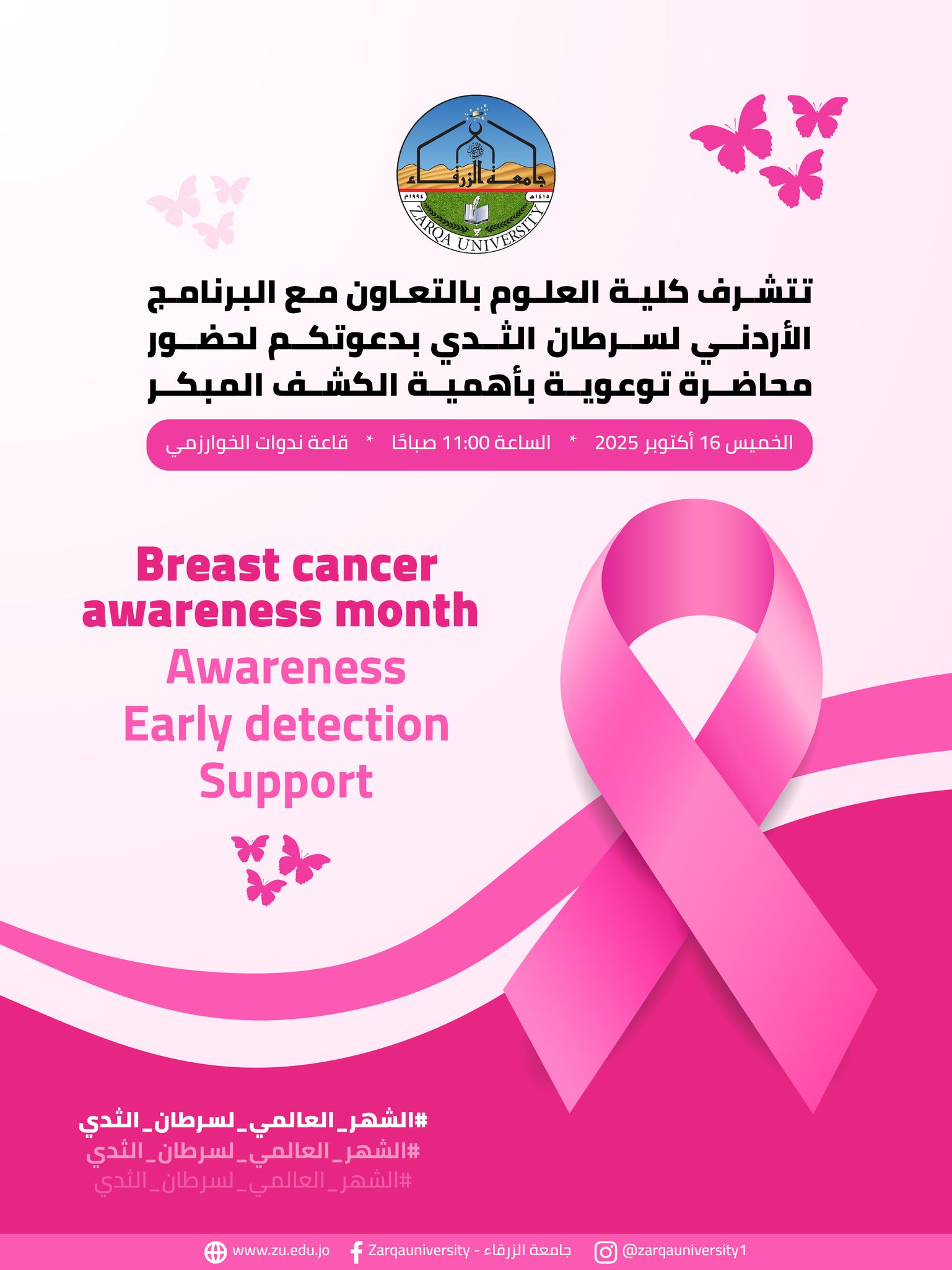 كلية العلوم تدعوكم لمحاضرة توعوية بالكشف المبكر لسرطان الثدي